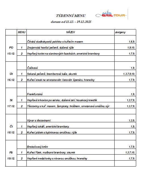 V úterý 16.12.2025 otevřeno do 13.15h.